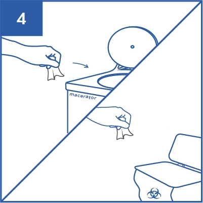 Step 1: Peel open the pack from the bottom. Step 2: Gently pull wipes as required. Step 3: Close the adhesive seal. Step 4: Dispose of used wipes in macerator or appropriate waste bin. Do not flush wipes down the toilet.
