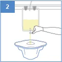 Place lid over General Purpose Pot. Place General Purpose Pot directly under urinal bag. Drain urine through the lid hole to prevent splashes. Dispose the General Purpose Pot with lid directly into macerator or into an appropriate waste bin.